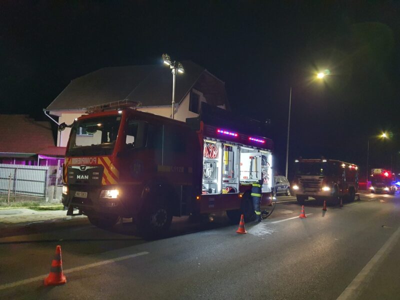 La fața locului s-au deplasat de urgență trei autospeciale de stingere cu apă și spumă, o autospecială de intervenție și salvare de la înălțime și o autocisternă.